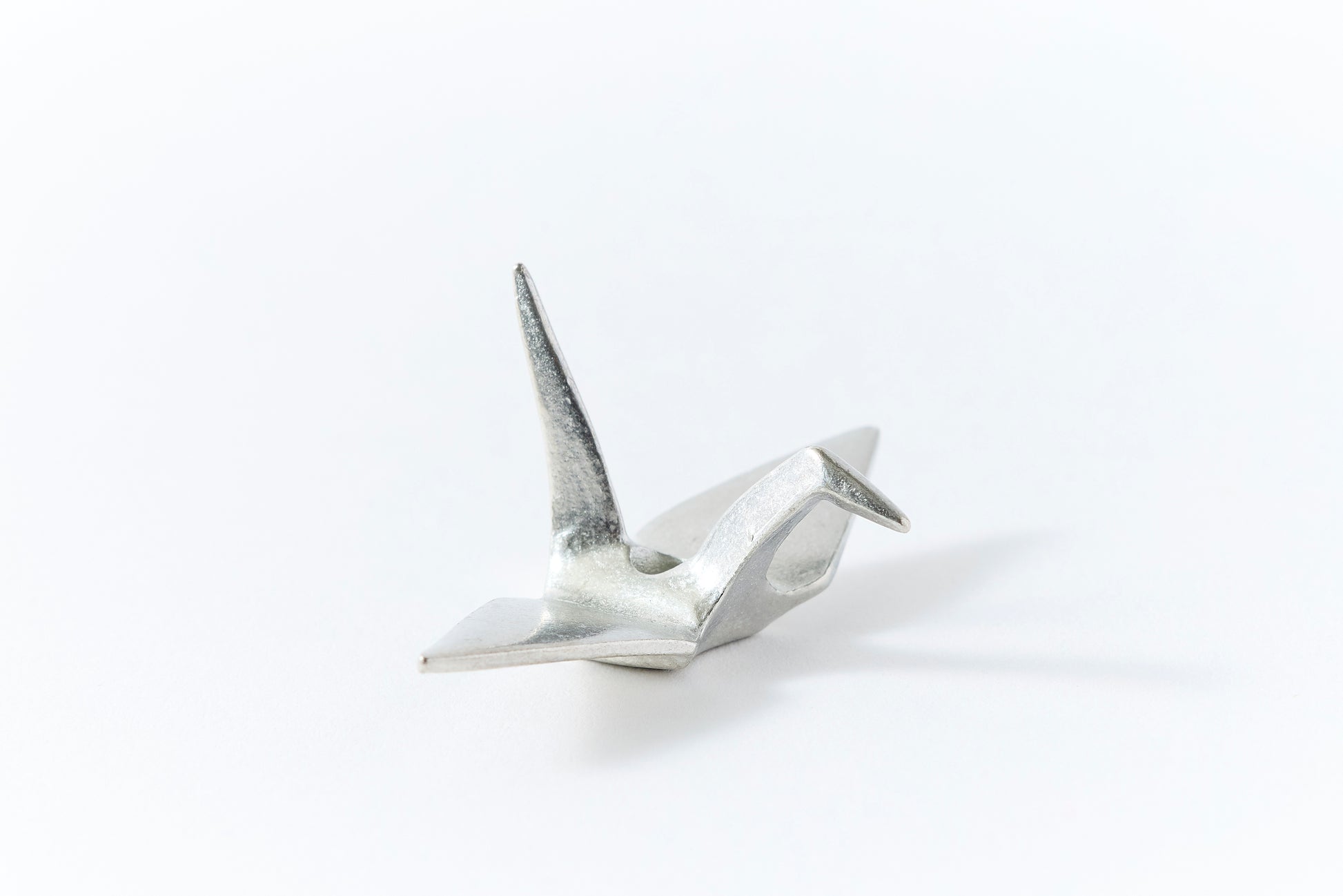 This is an incense holder made of tin, inspired by traditional Japanese origami.
