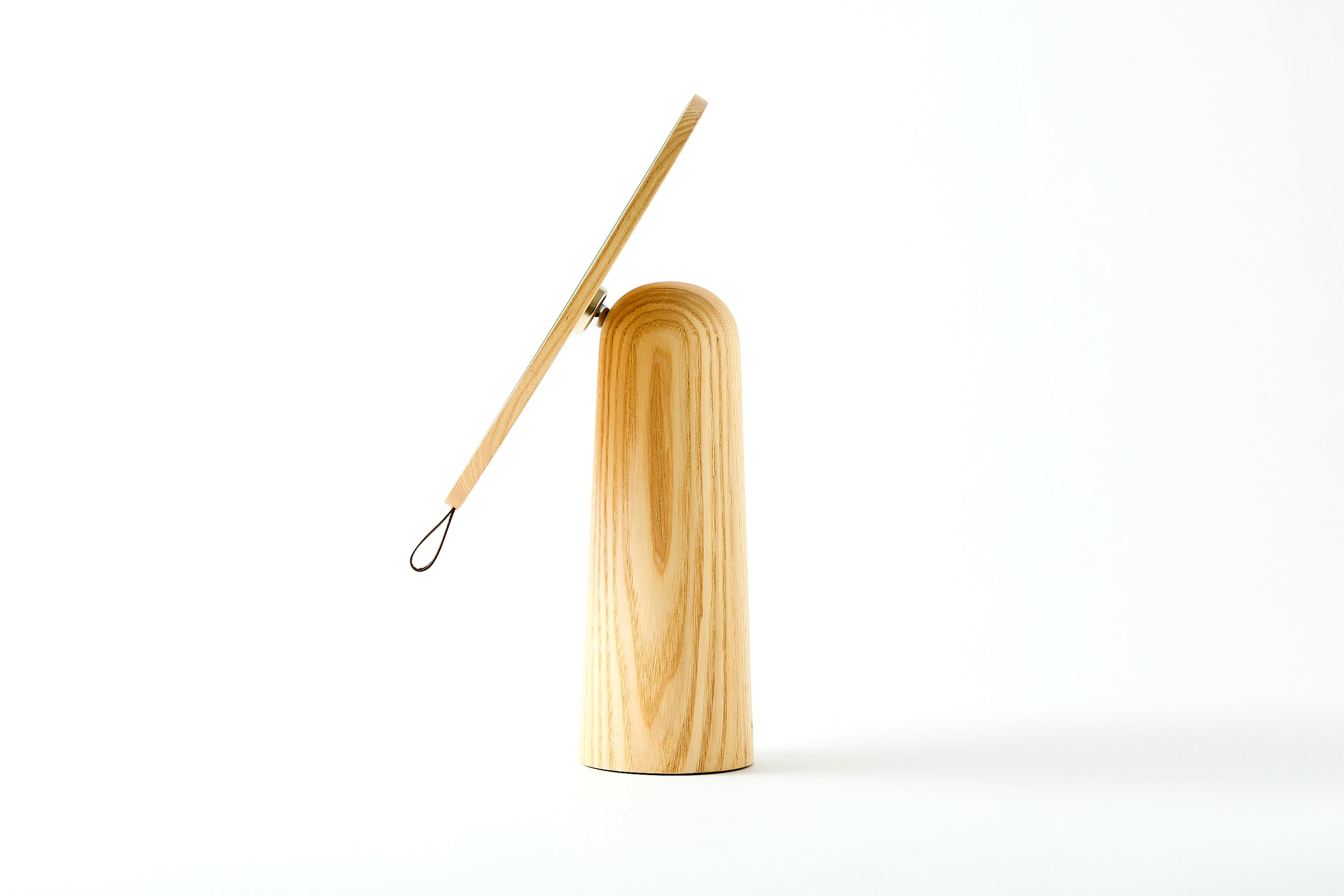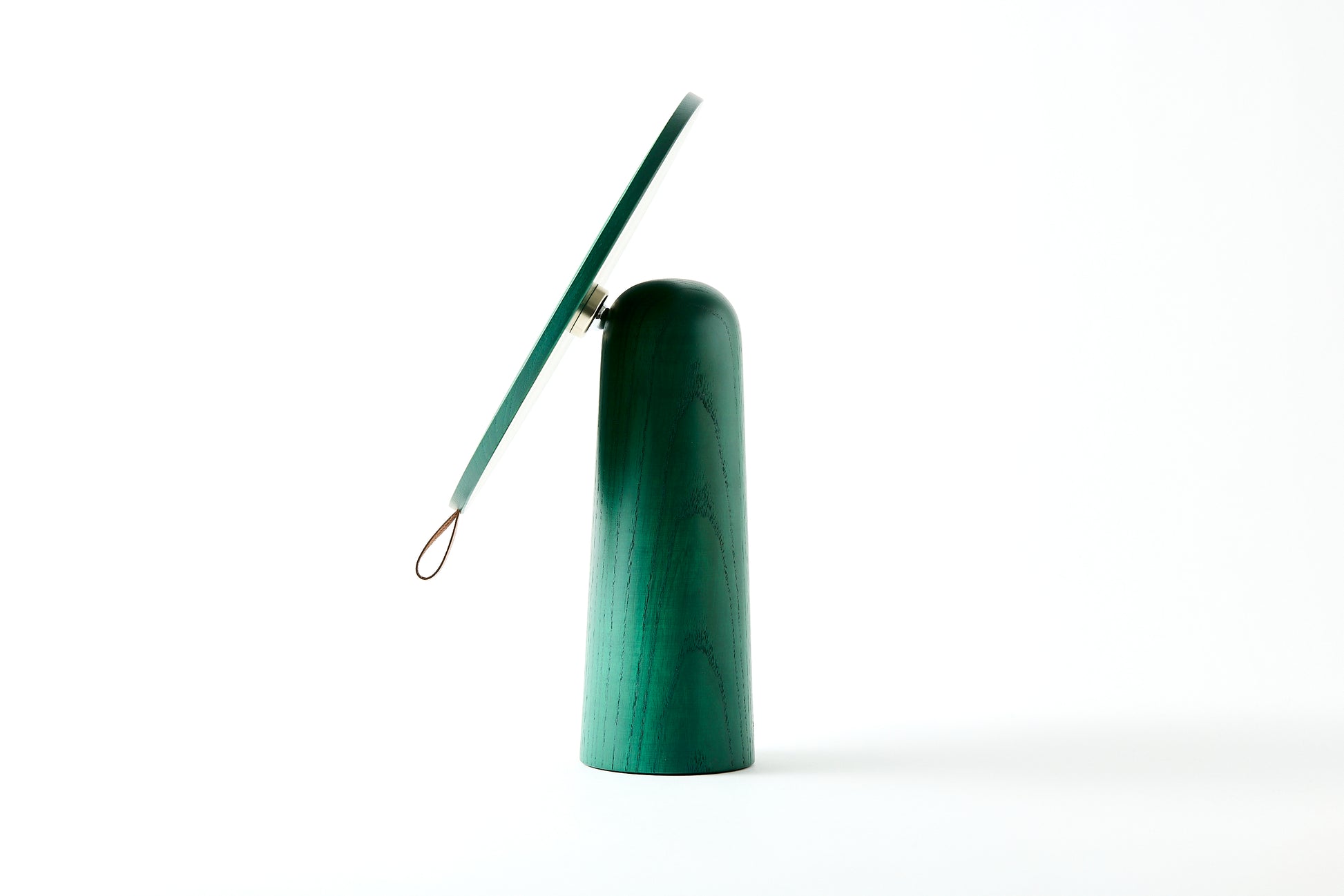 A mirror with an adjustable angle and orientation. A mirror with freely adjustable angles is very convenient when applying makeup or putting on accessories. It can be smoothly adjusted to any angle using a spherical magnet and combines easy portability with a comfortable thickness and a stable weight. In addition to basic colors like natural, dark gray, and light gray, it is also available in accent colors like green and pink to complement your interior.