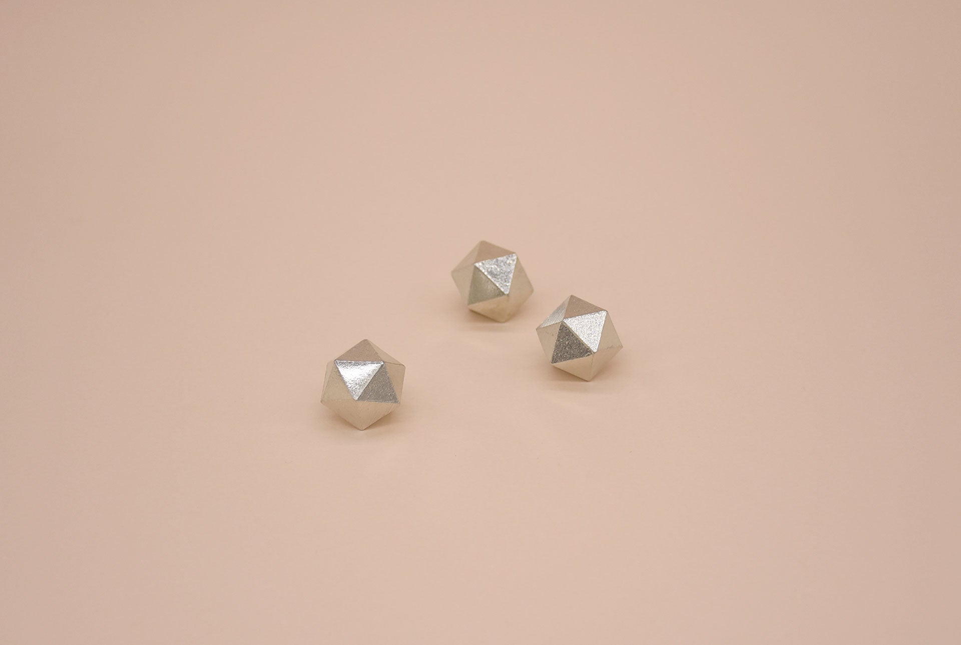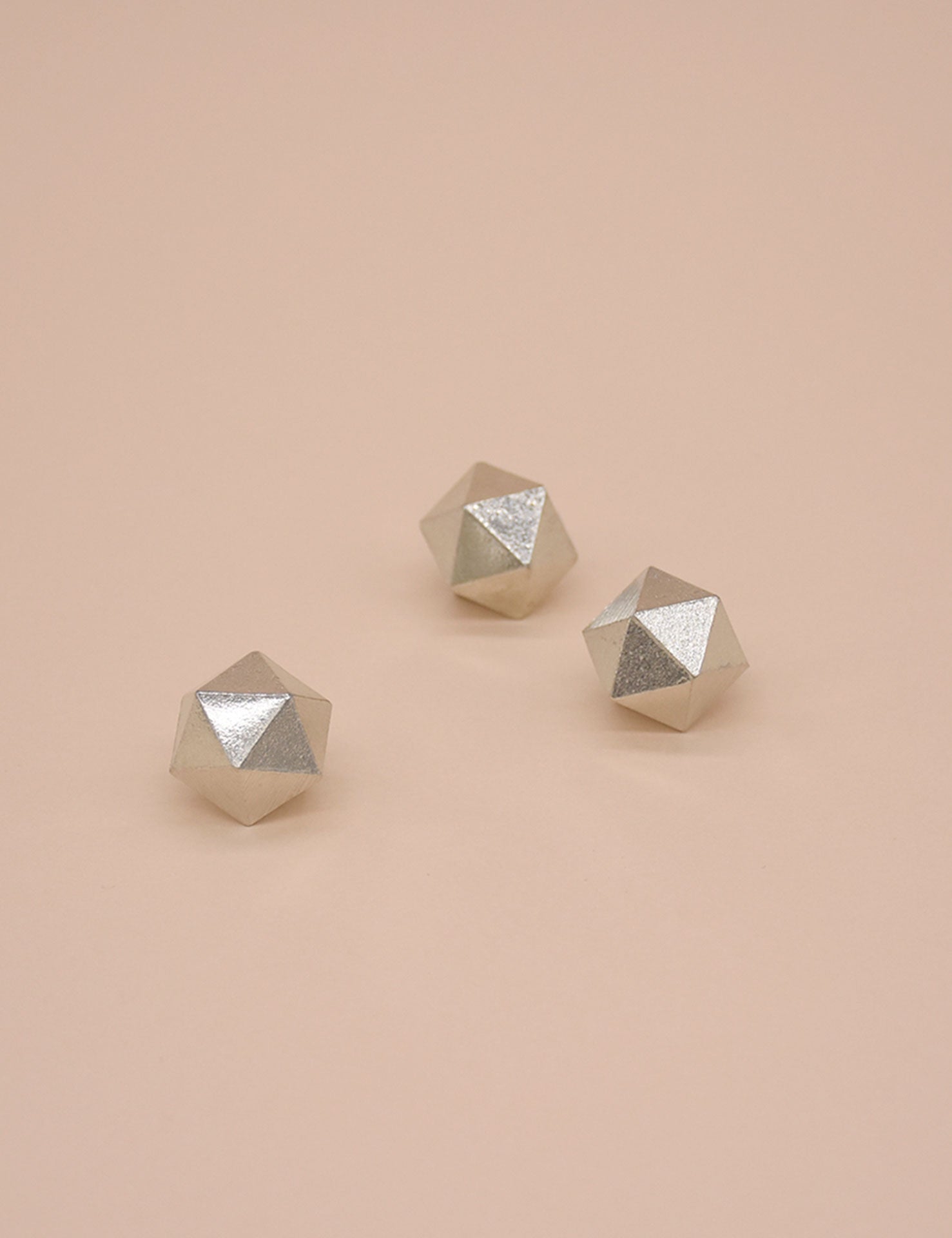 The regular icosahedron, composed of 20 equilateral triangular faces, is the regular polyhedron with the greatest number of faces in three-dimensional space. While it has a simple form, multiple faces are visible from any angle, and the differences in light reflection give it a variety of expressions. It can be used not only for vases, but also as a paperweight or as part of your interior decor.
