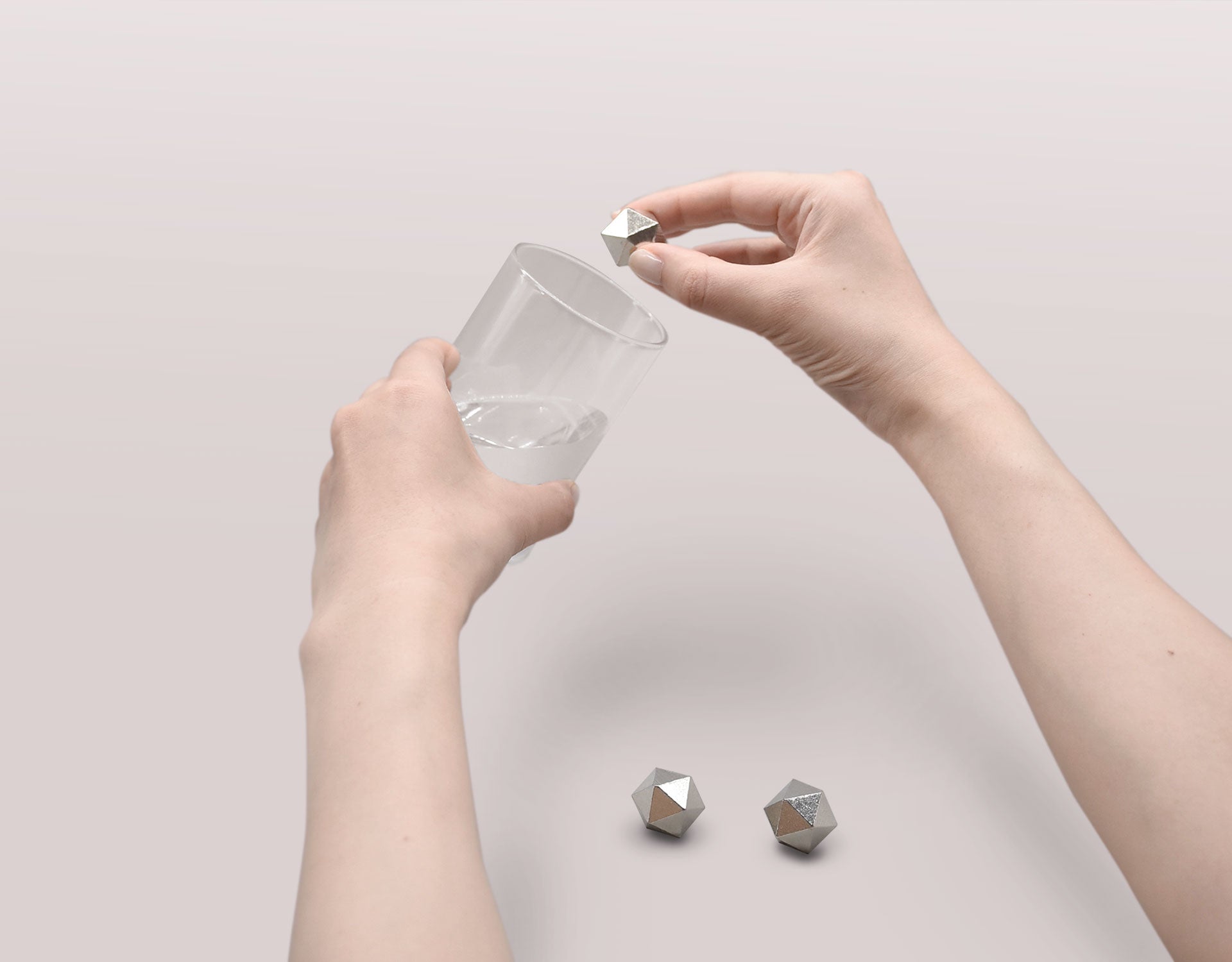 The "poly aqua" is a polyhedral tin casting that can be placed in a vase. Tin is said to have antibacterial properties that help preserve the life of flowers. It is made by recycling scrap material generated during the manufacturing process of tin products, as well as collected tin products.