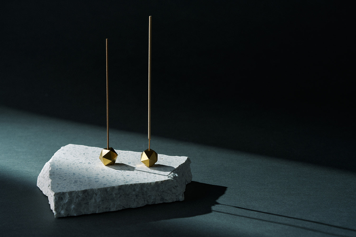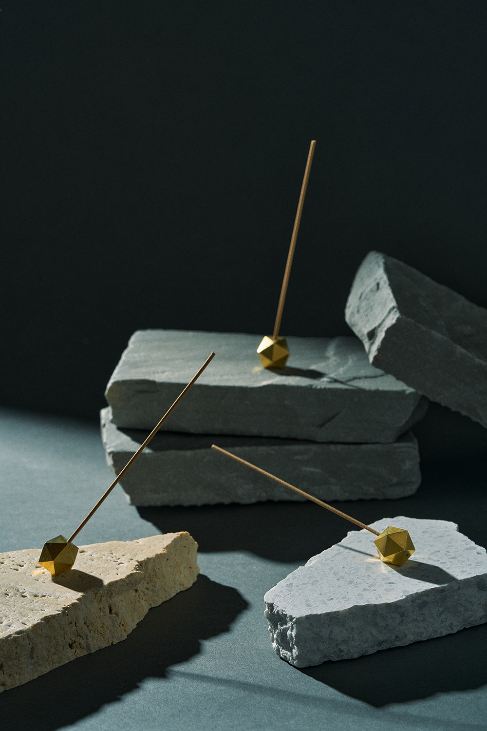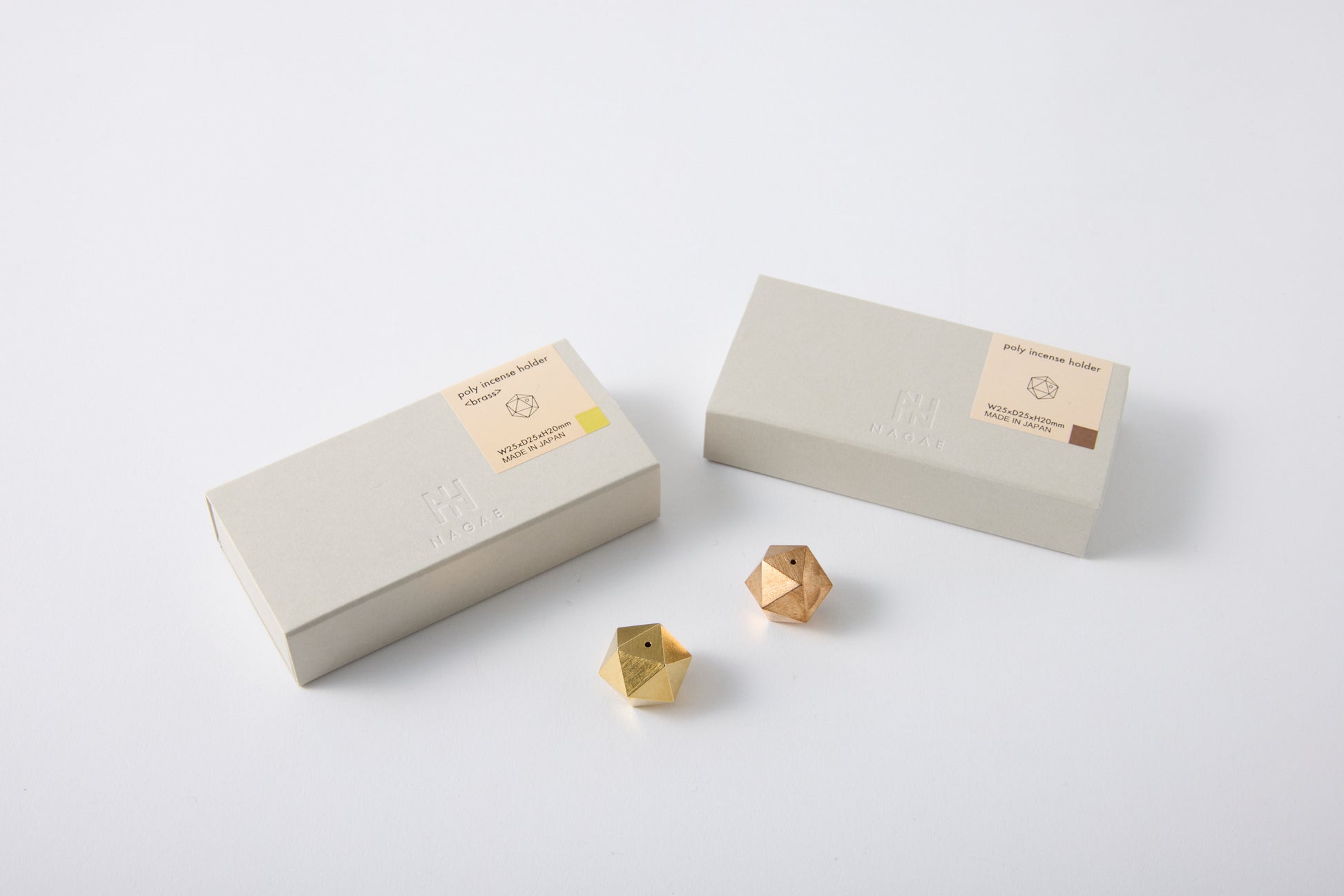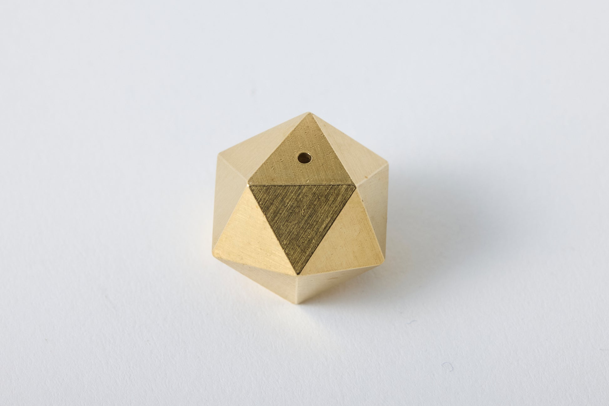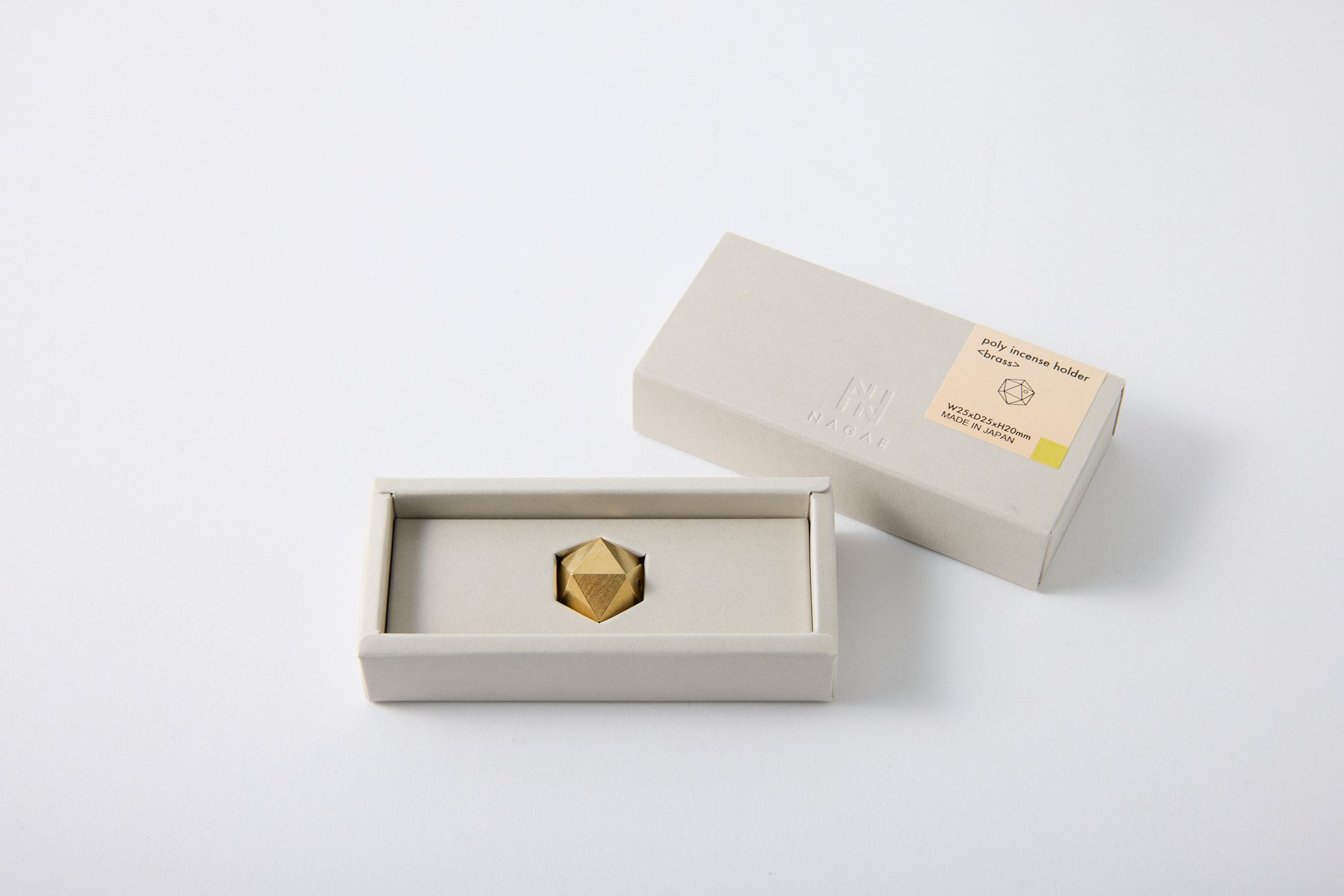 The "poly incense holder <brass>" is a brass incense holder made using die-casting, a high-precision casting method. Its icosahedral form allows you to use it at three different angles. (It can be used with stick-type incense such as senko (Japanese incense sticks) and bamboo incense.)