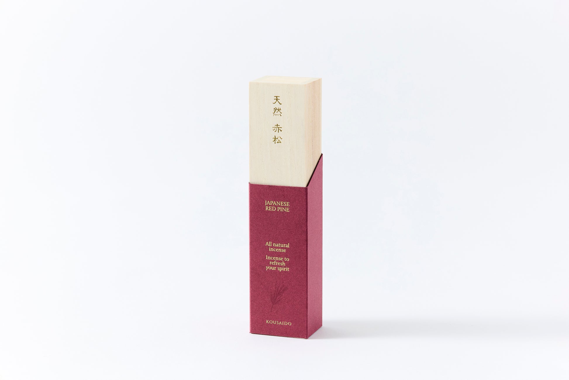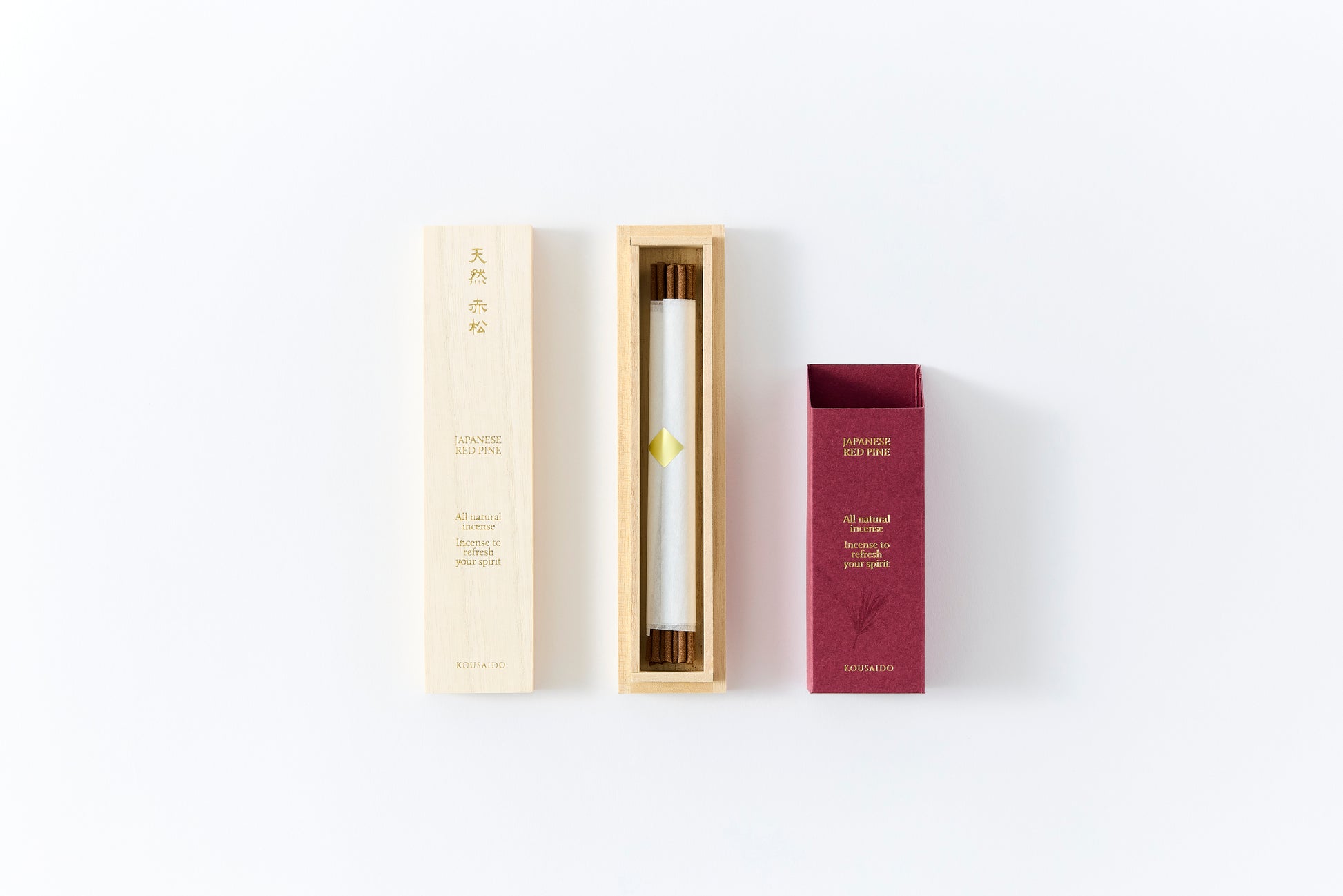 The numerous blessings provided by trees, particularly their fragrance, bring us healing. This incense, made with 100% natural fragrances using only essential oils and wood powder from trees without any dyes, expresses the refreshing feeling and comforting sense of relief experienced when taking a deep breath in the forest. JAPANESE RED PINE : Blended with essential oil and wood powder from Japanese red pine sourced from Keihoku, Kyoto. Its subtly sweet and robust scent revitalizes the mind.