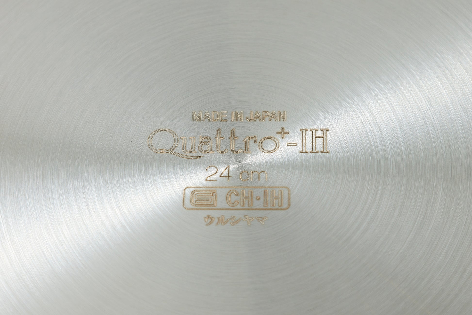 Commitment to Integrated Production and High Quality From body molding to interior fluorine coating, exterior polishing, assembly, and packaging, everything is produced in-house through an integrated production system. The exceptional strength and usability, combined with high quality, reflect the brilliance of Japanese craftsmanship, delivering a finish you can trust. The four-layer structure, composed of highly heat-retentive stainless steel and aluminum with excellent thermal conductivity, demonstrates outstanding compatibility with IH cooktops and superior durability. Compared to traditional three-layer structures, the thinner plate thickness and the addition of an aluminum interior layer enhance heat distribution and reduce weight. The interior surface is treated with Teflon™ Platinum Plus coating, making it resistant to sticking and easy to clean. It also enables healthy cooking with less oil. Metal spatulas are safe to use. "Teflon" and "Teflon" trademarks are registered by Chemours for fluoropolymer products and are used under license by Urushiyama Metals Industrial Co., Ltd.