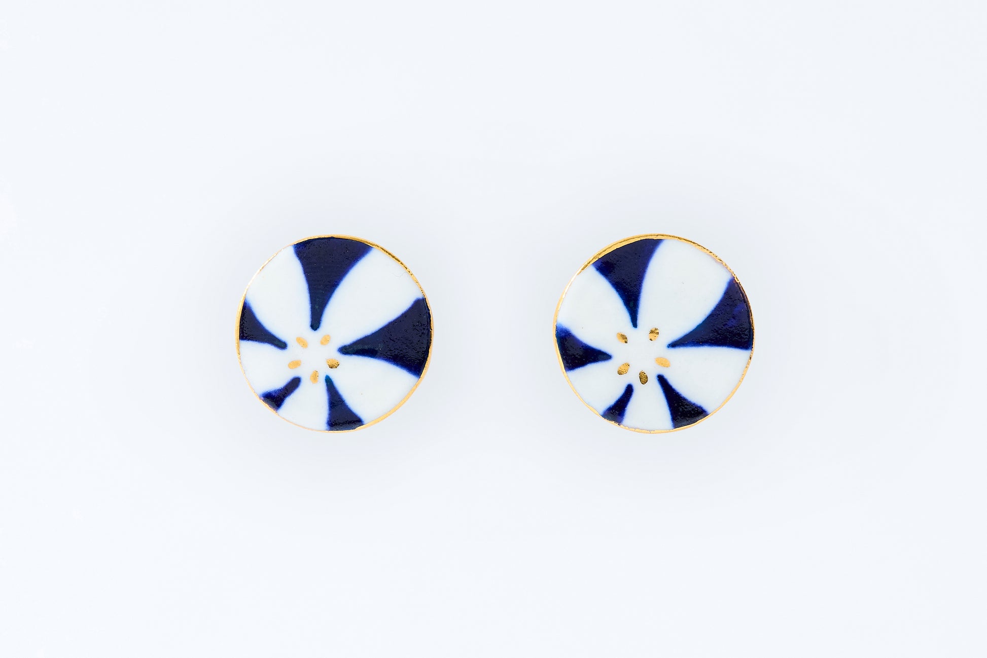 Hand-Painted Round Tile Night Cherry Blossom Earrings