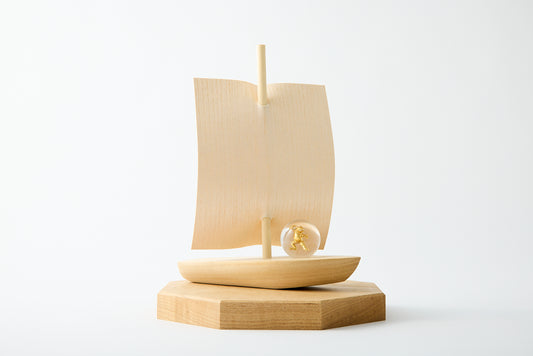 The boat itself is crafted from paulownia wood (kiri)—a material long used in maritime gear such as diving boards for tuna fishing. In mythology, the phoenix (hōō) is said to descend upon a paulownia tree, making it a symbol of sacred energy and happiness.