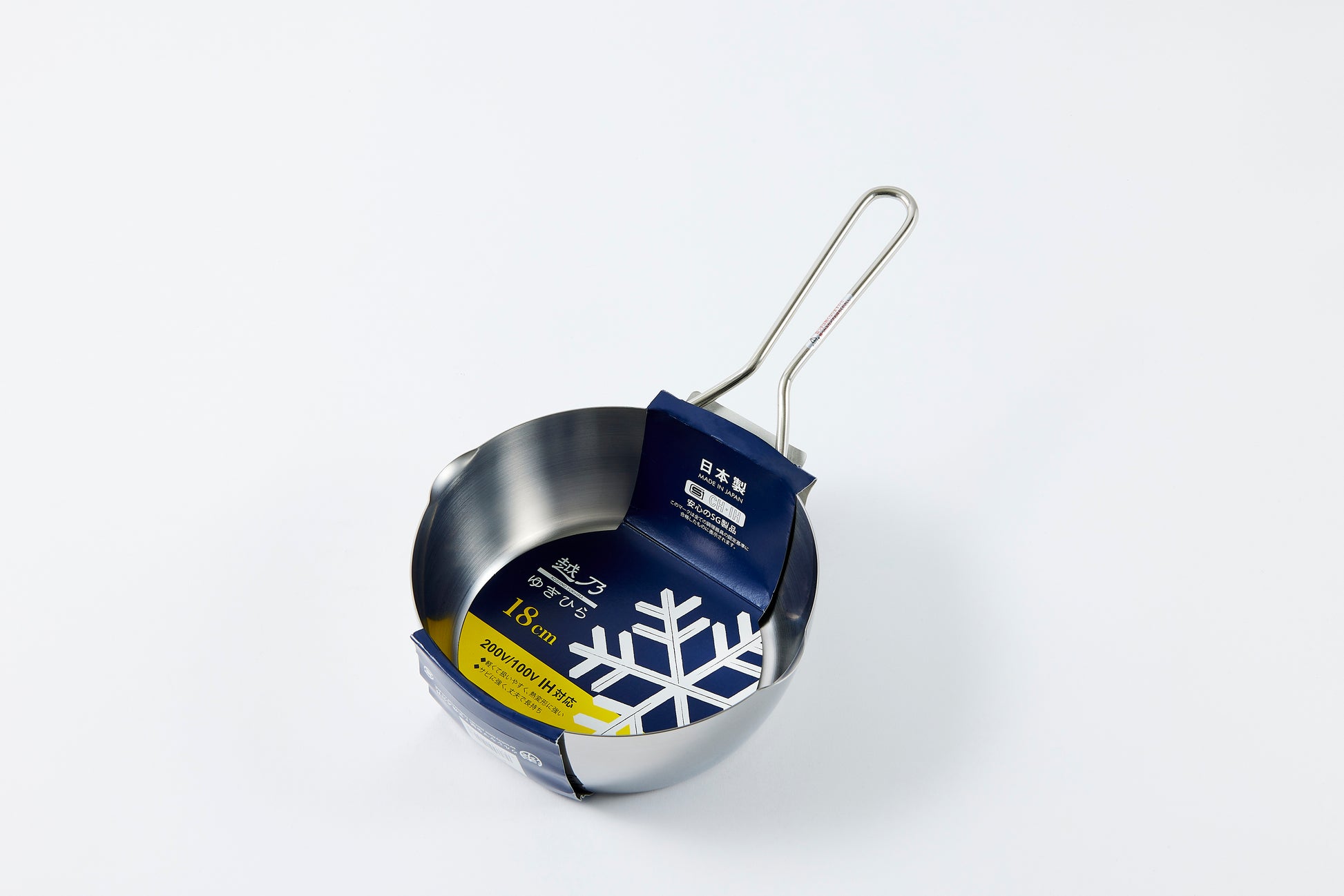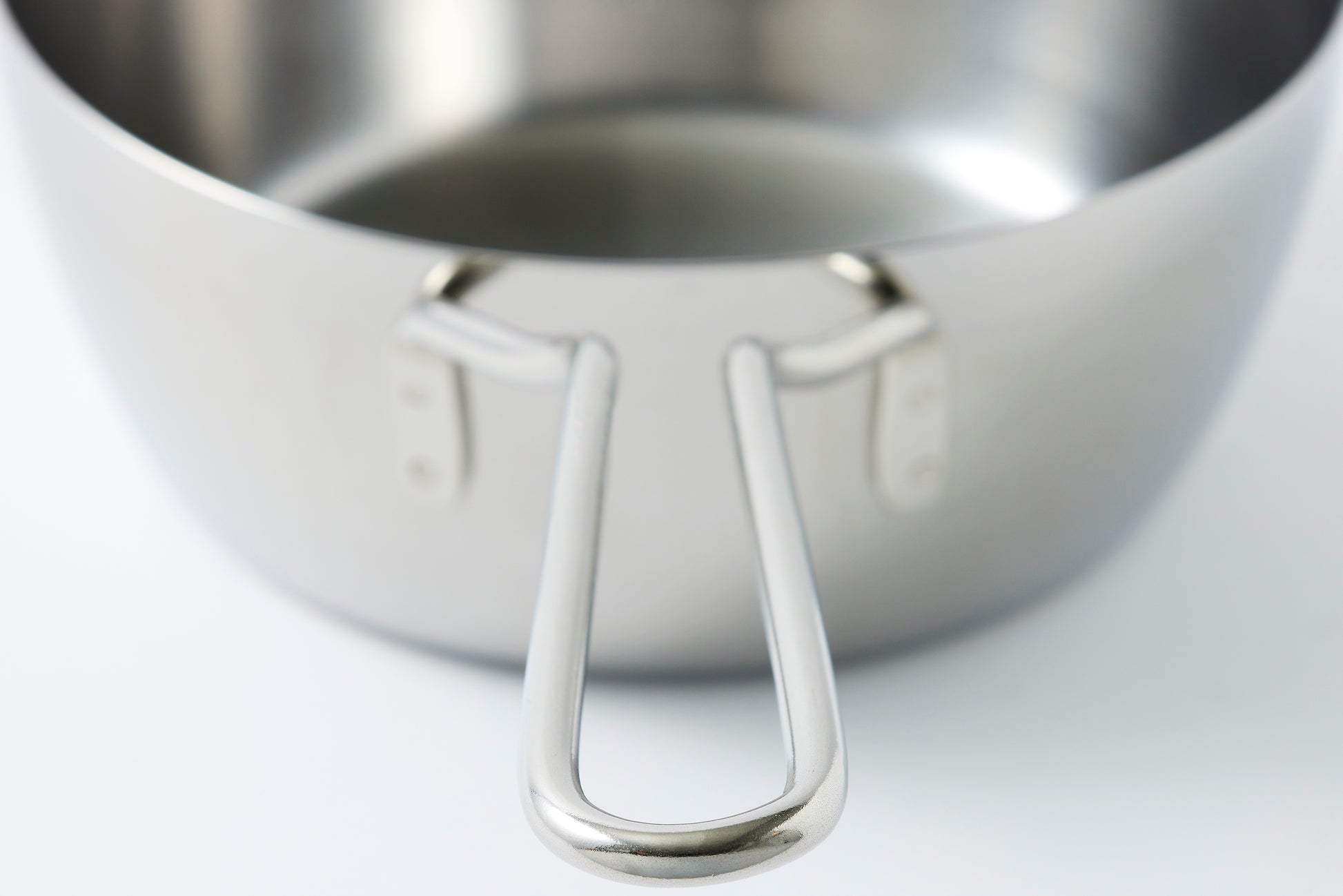 Unlike general aluminum Yukihira pan, "KOSHINO YUKIHIRA" is made entirely of stainless steel, making it suitable for use with induction cooktops (IH). Additionally, stainless steel is resistant to rust and deformation, making it durable and long-lasting. The pot features a single-layer stainless steel structure, providing excellent heat retention. The spinning manufacturing process, which allows for thinner side construction, achieves a lighter weight compared to pressed products of the same material and shape. Products made using the spinning method, where the material is gradually shaped with rollers, have less residual stress compared to pressed products, where the metal is instantaneously stretched, resulting in superior strength against thermal deformation. This series, suitable even for deep-frying, features a single-layer stainless steel structure with excellent heat retention and resistance to thermal deformation. It includes a measurement scale that makes it easy to see the oil level and assess the oil's color. The pot also has spouts on both sides, making it easy to transfer oil.
